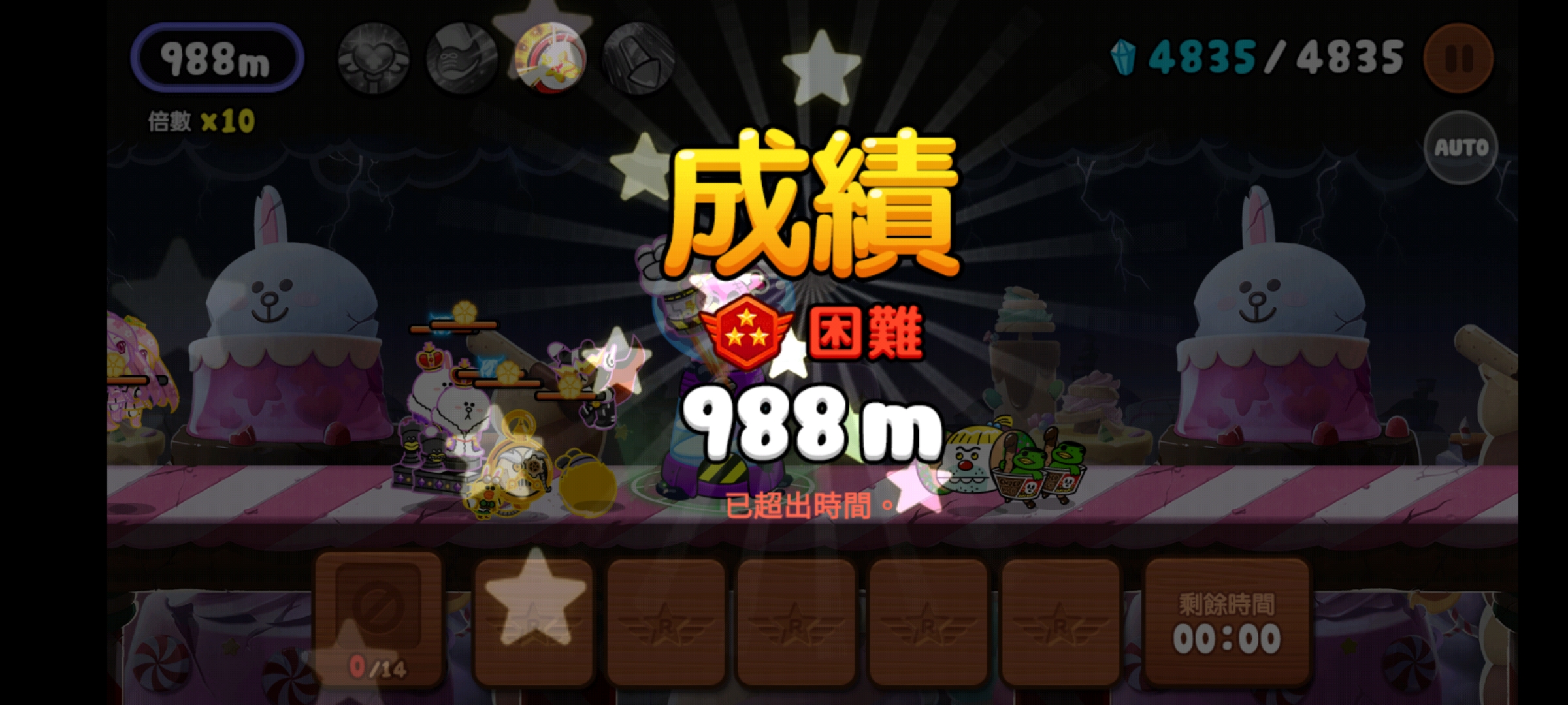 - 挑戰困難 700m 以後最好有倍體回血,尤其 900m的破無敵濺射塔超痛,不然就要靠無敵道具了。